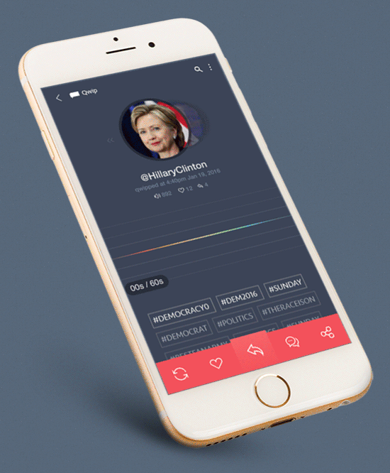 SayIt socializes your audio or video recordings of 60 seconds or less into "Qwips".
